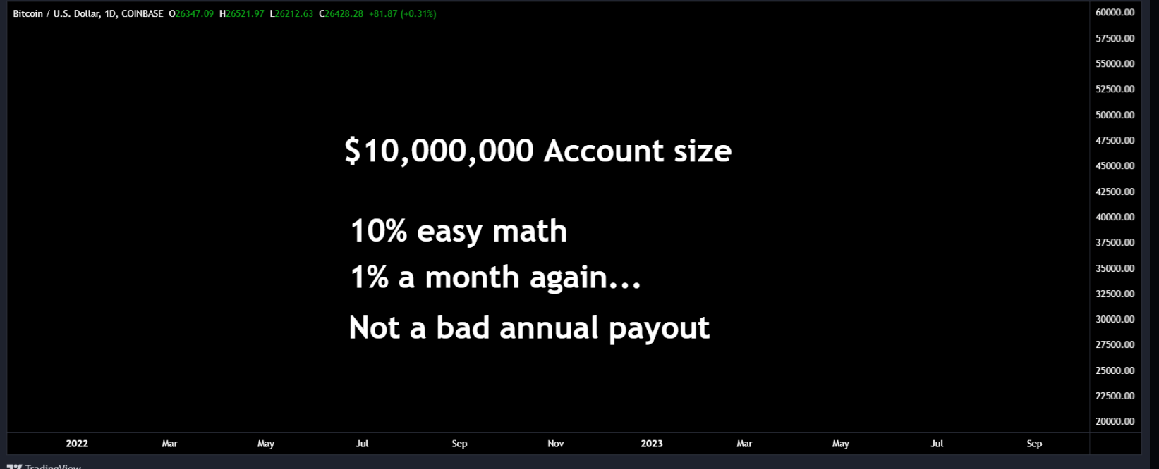 Here's where the Professionals play the game differently. Trying to make 1-5% is a lot more sustainable than trying to land a 900x return.